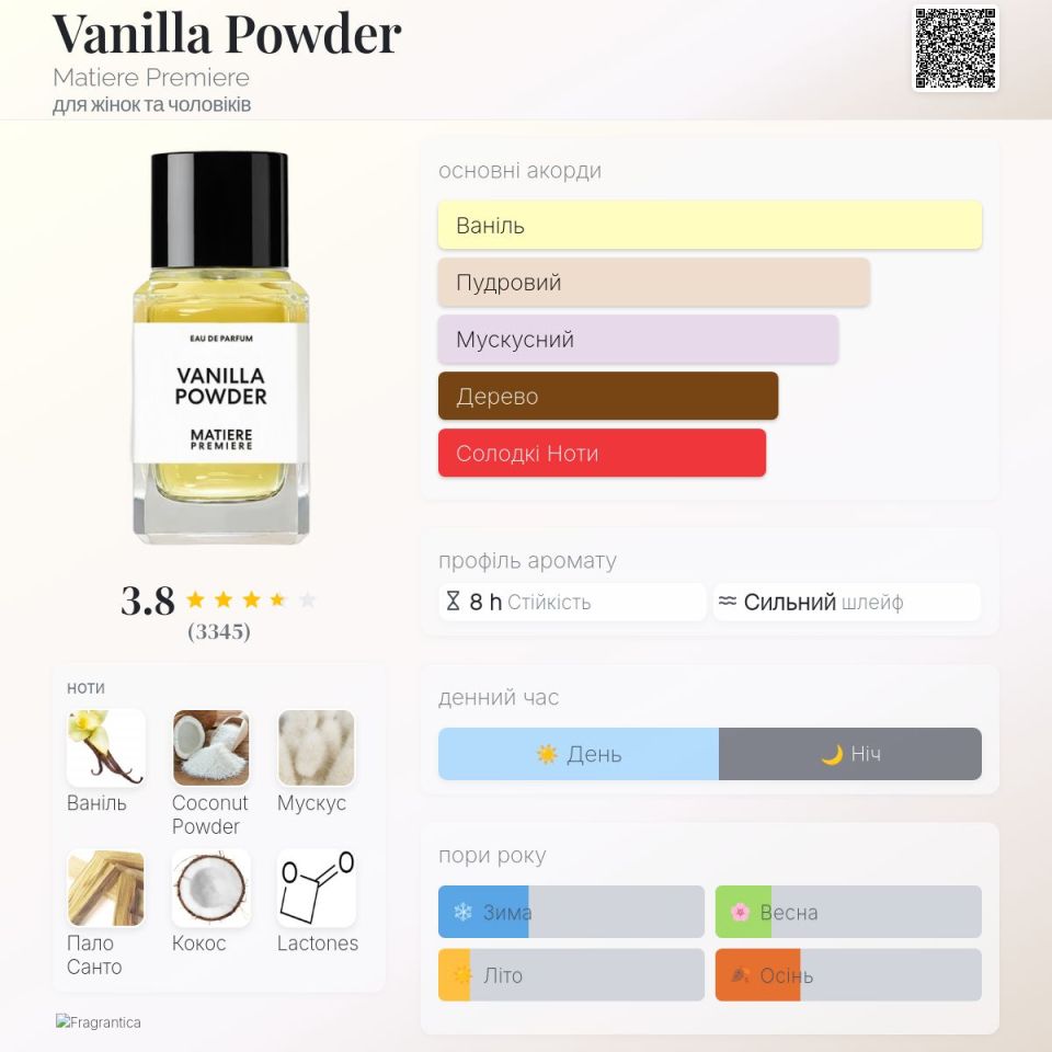 Унісекс аромат, випущений у 2023 році парфумером Aurélien Guichard. Верхні ноти: Кокосова пудра та Геліотроп; середня нота: Мадагаскарська ваніль; базові ноти: Абсолют ванілі, Білий мускус, Мускус, Пало Санто, Кокос та Лактони.