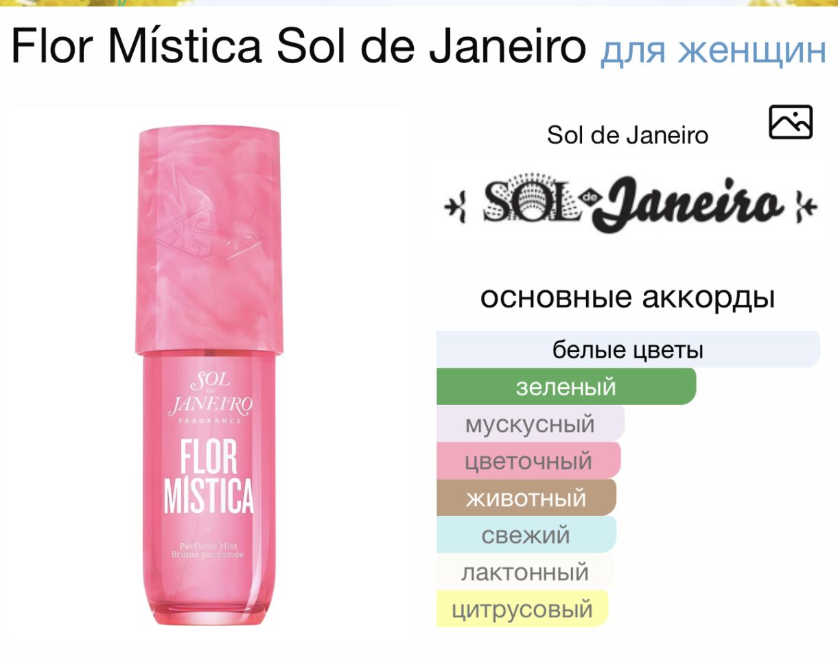 Флор МістікаСоль де Жанейро це парфум для жінок, належить до групи квіткових. Це нове видання: Флор Містіка випущений в 2025 році. Верхні ноти: Кокосове молоко і Апельсиновий Цвіт; ноти серця: Гарденія, Антуріум і Біла Троянда; ноти бази: Лист Пальми і Мускус.